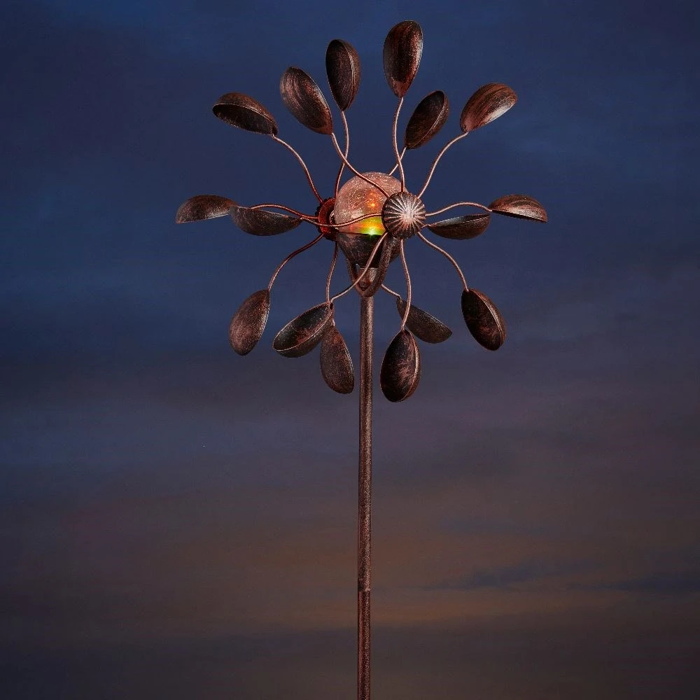 Spinning freely even in a light breeze, the mesmerising motion sees the arms rotate in opposite directions as the light ball transitions from hue to hue. A real pleasure to sit and watch at the end of the day.