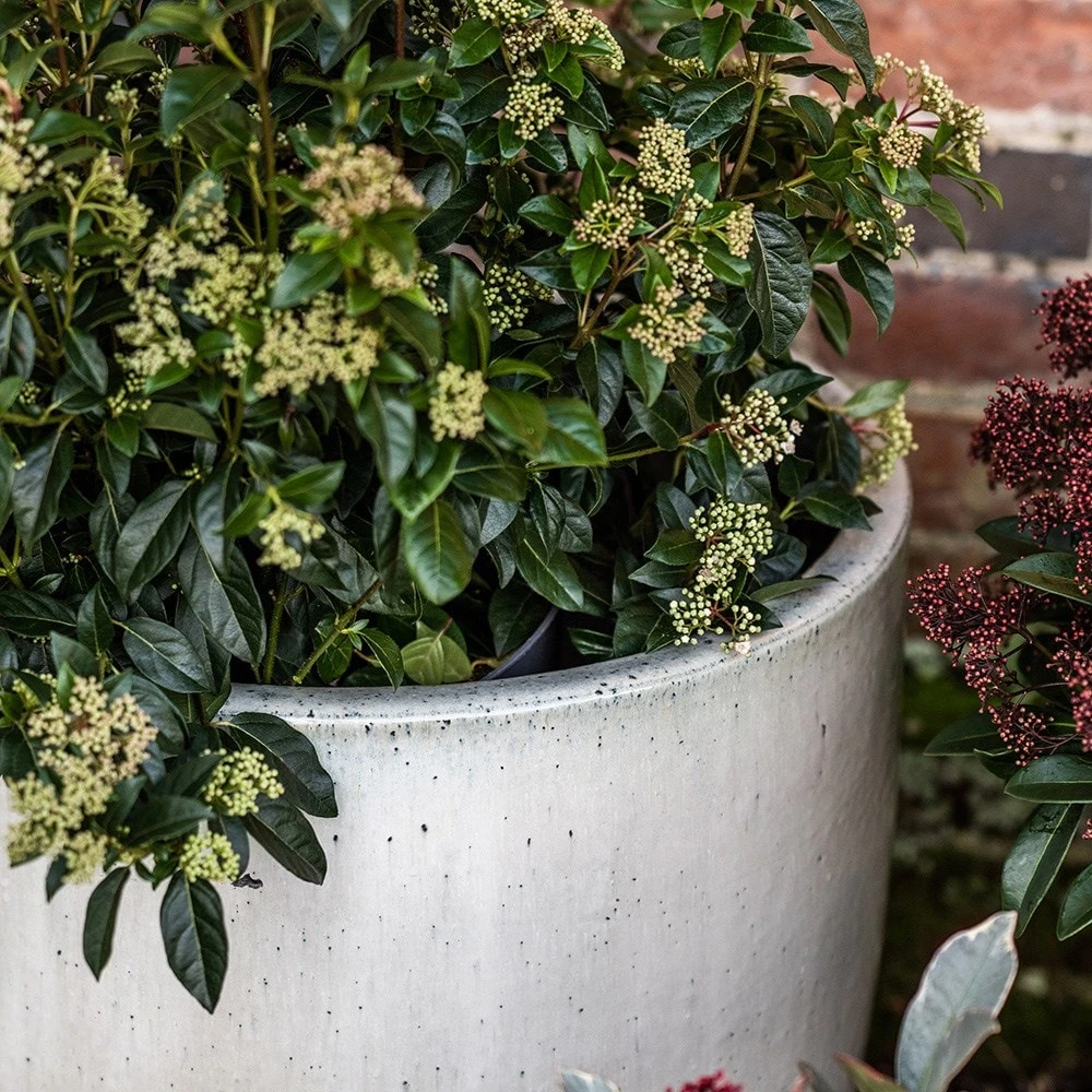 Fired at very high temperatures for UV and frost resistance, the pots are suitable for year-round outdoor use. Supplied with a drainage hole.