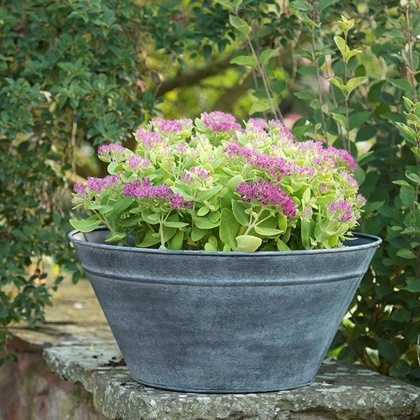 A classic conical metal planter with a wide mouth to provide a generous planting area. Made from steel with a distressed aged zinc finish and pre-drilled with drainage holes for direct planting.