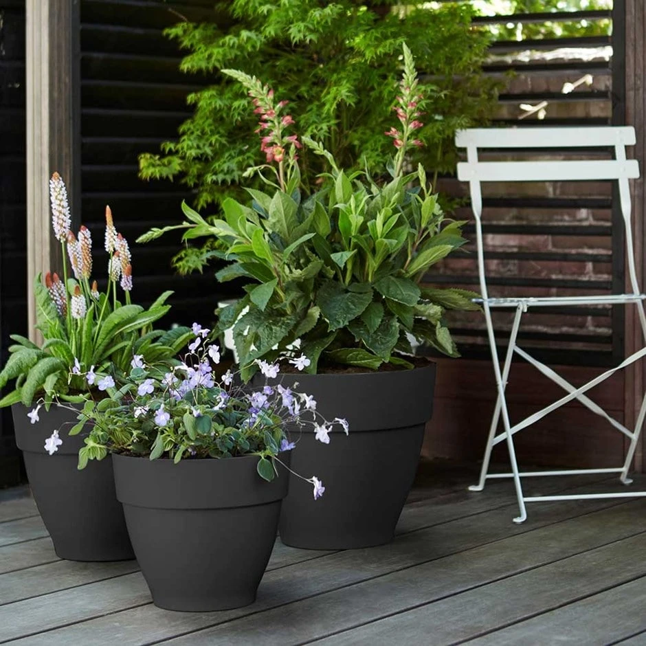 Made from recycled plastic with a lightly textured finish to give it a rugged edge. Ideal for colourful annuals, herbs or bulbs on the patio.